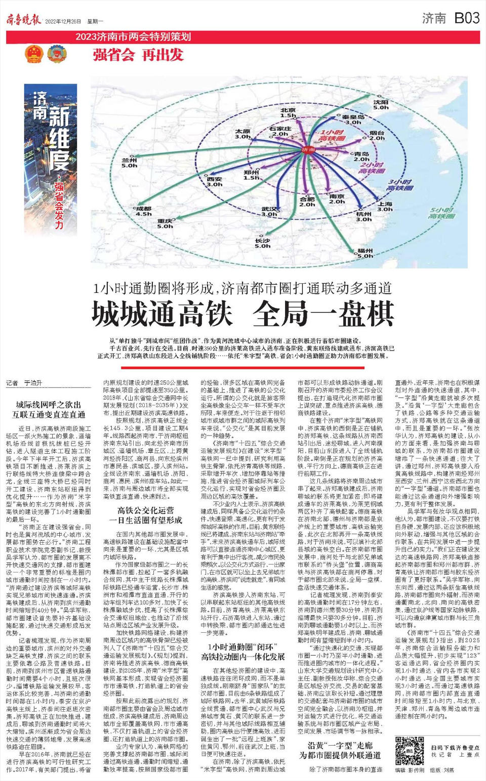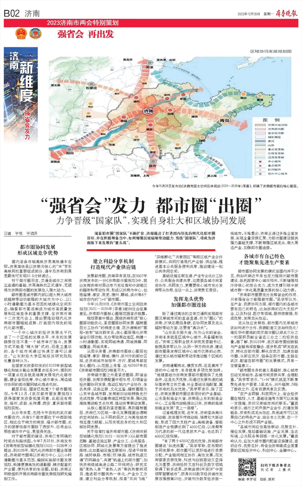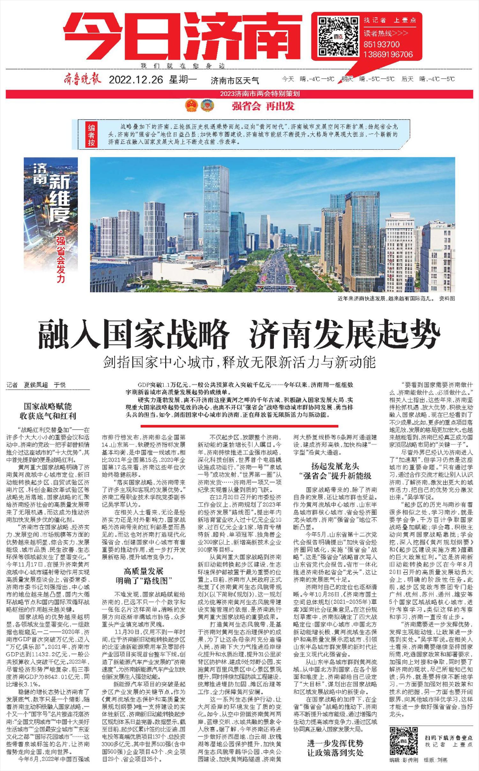 战略机遇叠加!扬起省会龙头,济南“强省会”再出发 大众报业·齐鲁壹点 2022-12-26 5811 战略叠加下的济南,正抢抓历史机遇乘势而起。迈向“黄河时代”,济南城市发展空间不断扩展;扬起省会龙头,济南的“强省会”地位日益凸显;加快都市圈建设,济南城市能级不断提升。大格局中展现大担当,一个崭新的济南正在融入国家发展大局上不断走在前、作表率。 责任编辑:孟燕