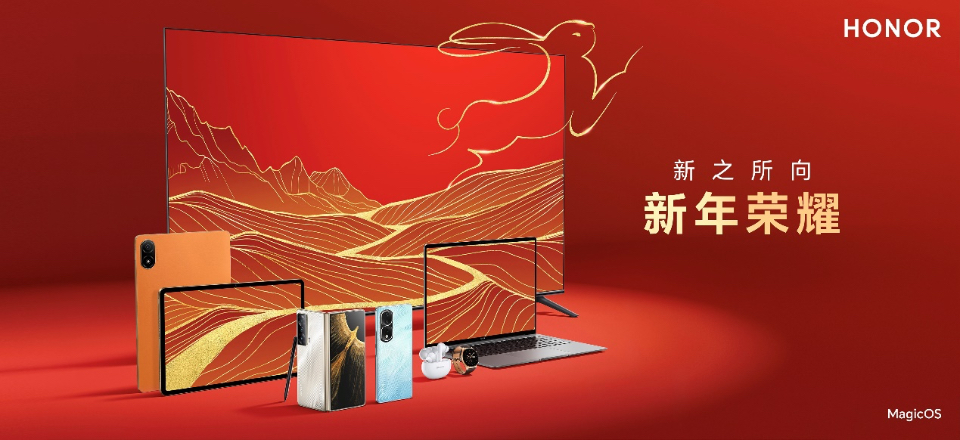 在新年来临之际,荣耀也在此次发布会上宣布2023年货节正式开启。“荣耀新年吉市”大型主题活动即将在成都、东莞、福州、济南、上海、武汉、杭州、昆明、苏州、石家庄等城市开展,消费者到店即可体验智慧互联带来的科技乐趣,感受满满的新年荣耀氛围;在各大电商平台,也将有各种福利回馈上线。此外,荣耀还为大家准备了大量新年“吉兔”,在荣耀线下门店借助MagicOS智慧体验的强大能力,抓到专属“吉兔”,可以赢取春节好礼,把幸运和祝福带回家。新年新气象,荣耀希望可以为消费者打造逛新年吉市、享新春好礼的双倍惊喜,祝福每个热爱生活的人新年荣耀!