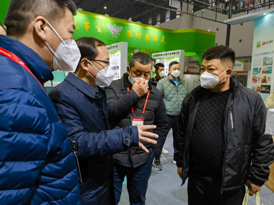 在笨鸡小跑展位前,唐珂仔细倾听笨鸡小跑创始人傅文斗“举健康旗,做良心菜——让世界爱上沂蒙菜”的追求和做法,仔细了解爱亿农预制菜供应链基地融合一二三产业发展,促进创业就业、消费升级和乡村振兴的探索与成绩,现场为“临沂炒鸡”打call点赞,并高度评价了“生态沂蒙山 优质农产品”品牌建设工作。唐珂深情寄语道,产品质量是农产品品牌的核心,临沂市一定要发挥生态优势,提升农产品质量安全,打造让老百姓放心的产品。