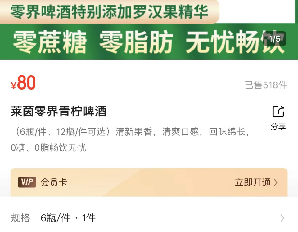 但是,对于年轻人来说,尝尝无糖啤酒的鲜并不等于无限复购。有不少莱茵零界的消费者在评论区留言称“挺好喝的,就是有点贵”。在莱茵生物的官方商城,80元只能买到6瓶无糖啤酒,相较于普通的低度酒或者啤酒而言,此类无糖啤酒性价比并不算高。