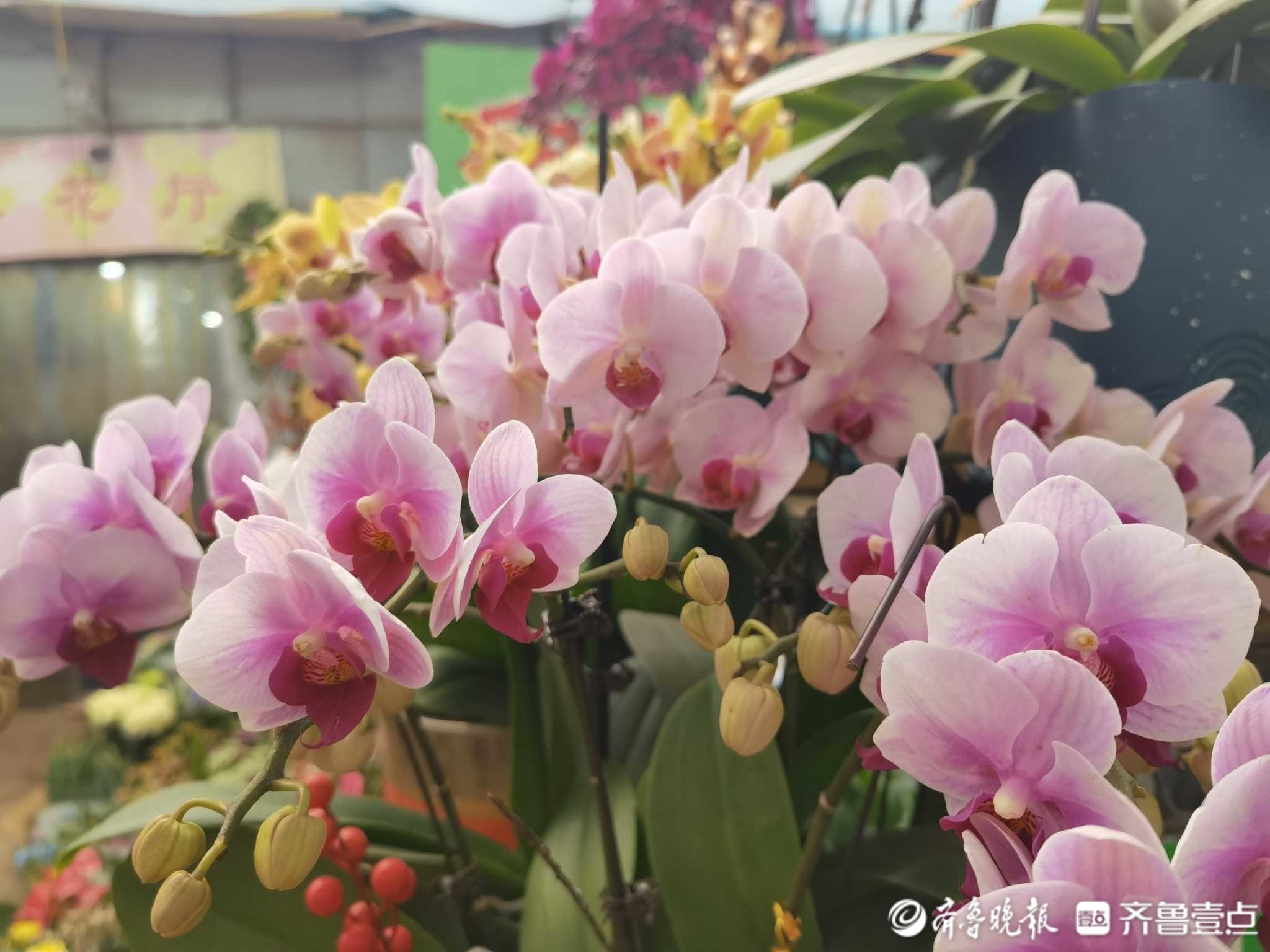 经过了解,现在的蝴蝶兰价格在一株30到45元。花店老板介绍,过了腊月二十肯定会涨价,“有的花价格可能要翻倍,今年花存量不多,现在买花色齐全。”