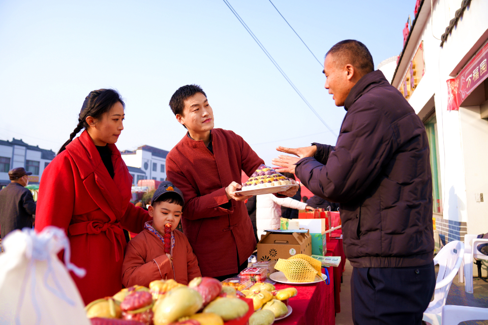 琳琅满目的水果蔬菜、待宰的鸡鸭鱼羊、大红灯笼和柴米油盐酱醋茶……现场十足的市井味儿和烟火气,赶集的人一拨接一拨,人头攒动,摩肩接踵,此起彼伏的吆喝声、讨价还价声,汇聚成了充满温馨与热闹的大集味道。