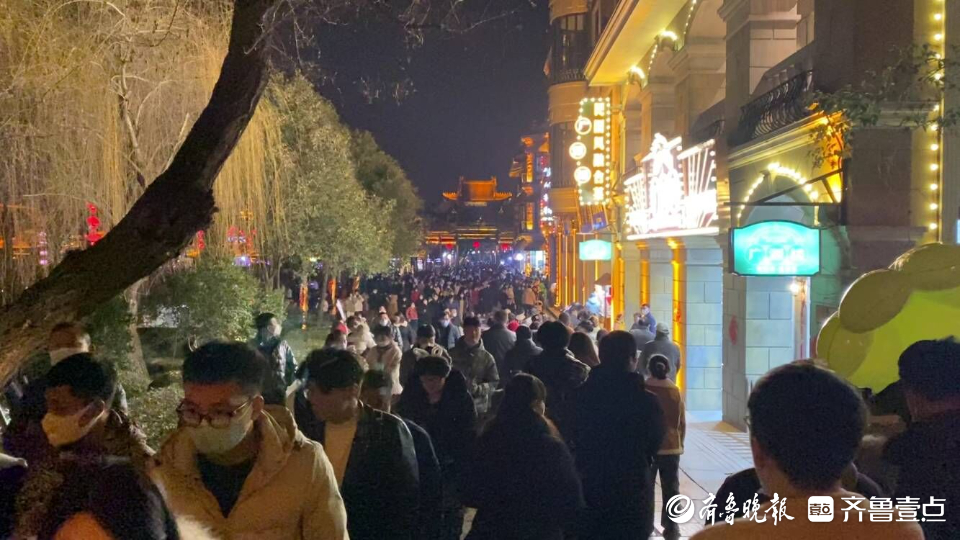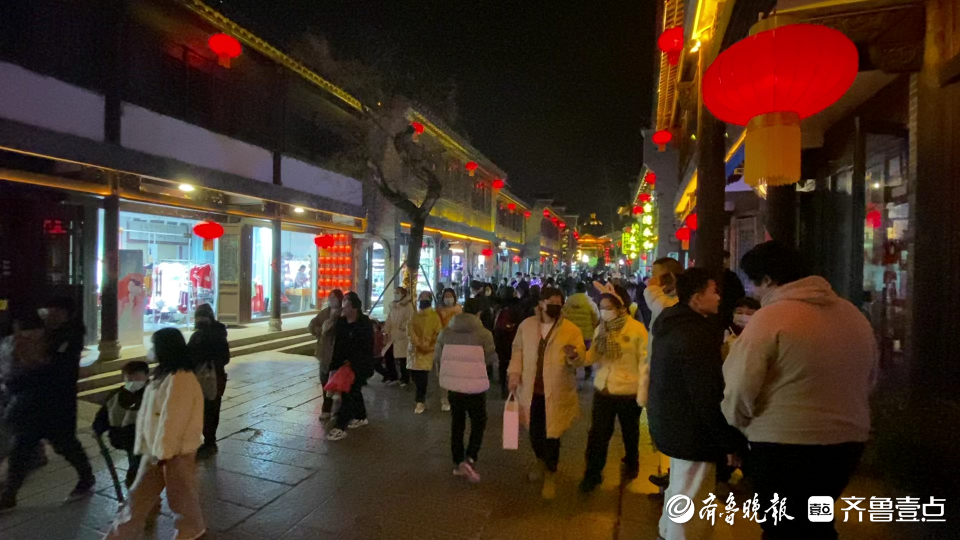 “我们在网上看到台儿庄古城免门票的消息就过来了,打算在这玩两天再回家。晚上的古城非常漂亮,我拍了好多照片发朋友圈呢。”专程从淄博坐高铁过来的高女士向记者说道。