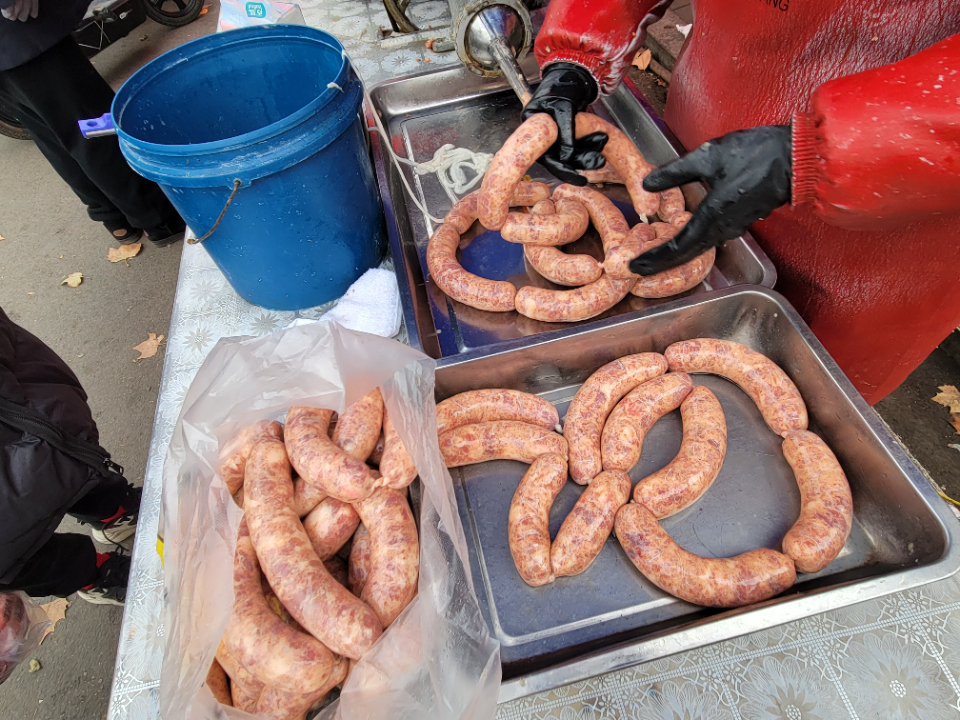 枣庄年关灌肠生意红火,店主:每天能灌1500斤