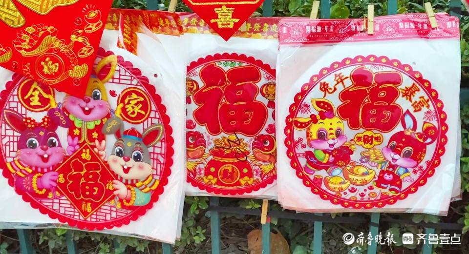 逛了一圈下来,记者注意到,前来选购年货的市民喜好不一,但是立体和带有“兔”元素的春联、福字等年货要更受欢迎一些。“我在这条街摆了八九年摊了,有很多老顾客,今年是兔年,我进的样式也多。”摊主郁老板告诉记者,今年他囤了大概一万块钱的年货,准备一直开门迎客到大年三十,不仅不会随意调价,而且如果买回去的春联不合适也无条件给顾客调换。
