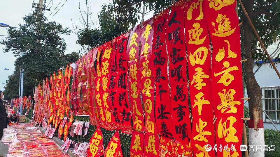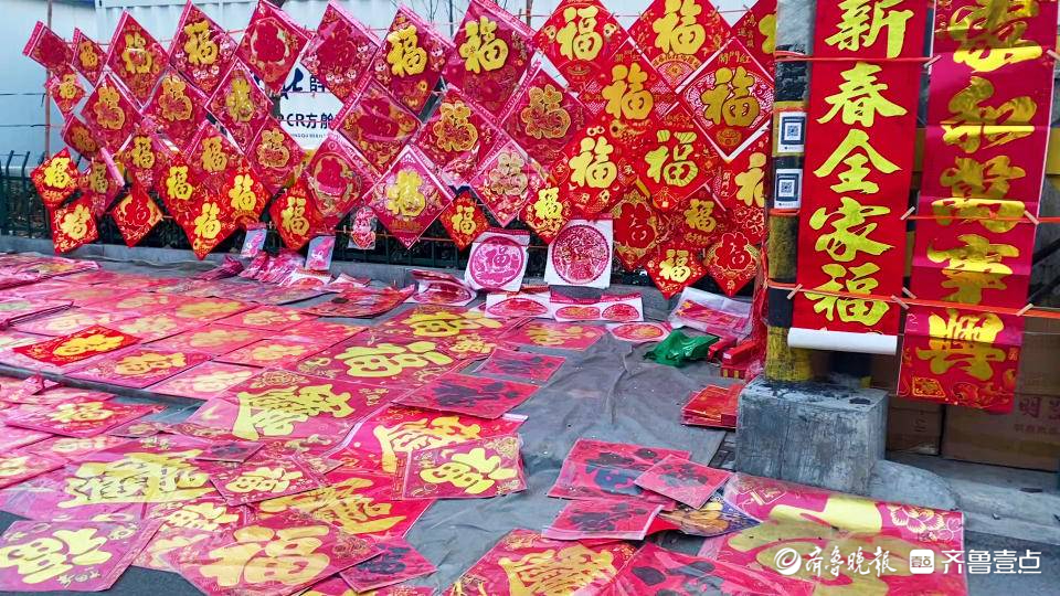 随着兔年春节的临近,枣庄大街小巷的年味也越来越浓。1月16日,记者来到了位于枣庄市薛城区海河路的年货临时销售点,只见路边各种各样的春联、福字应有尽有,各个摊位的摊主忙的不亦乐乎,过年氛围感逐渐拉满。
