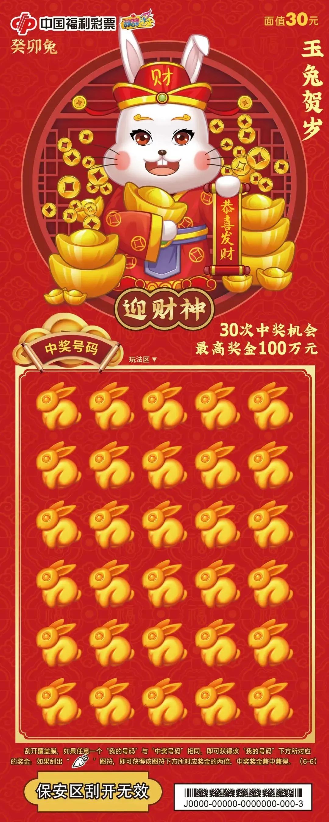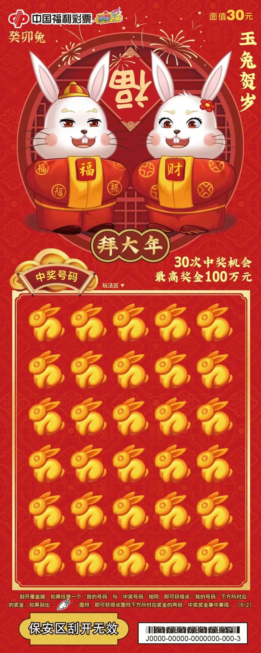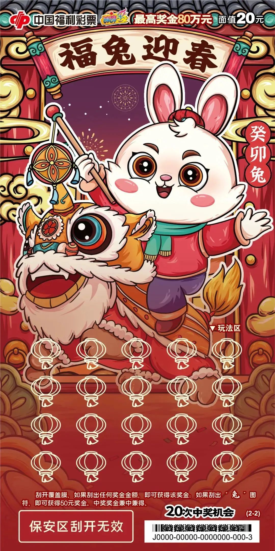 中国福利彩票此次推出刮刮乐“癸卯兔”生肖系列主题票,意在践行公益初心,传递美好祝福,祝愿大家在新的一年大展宏“兔”、好运连连!