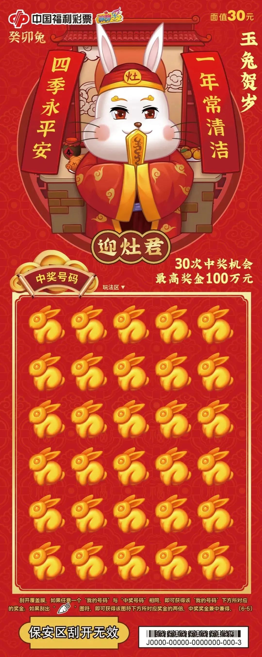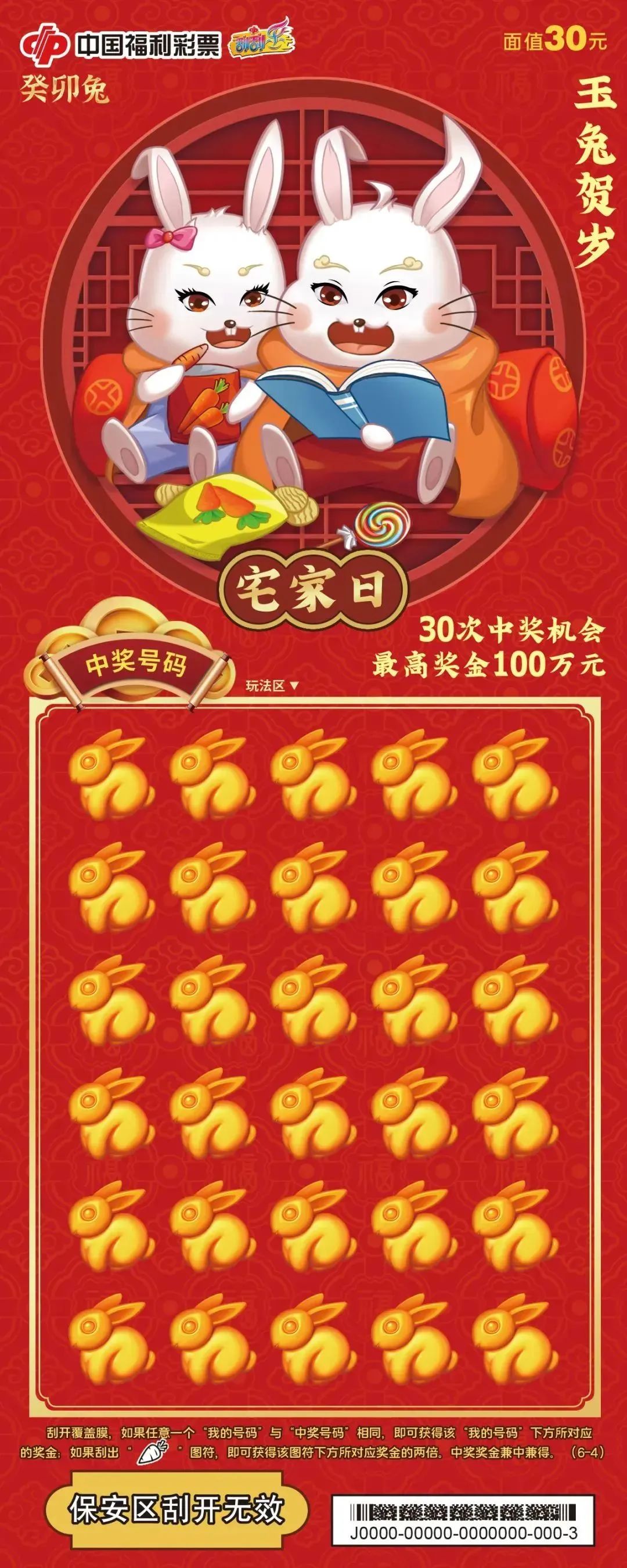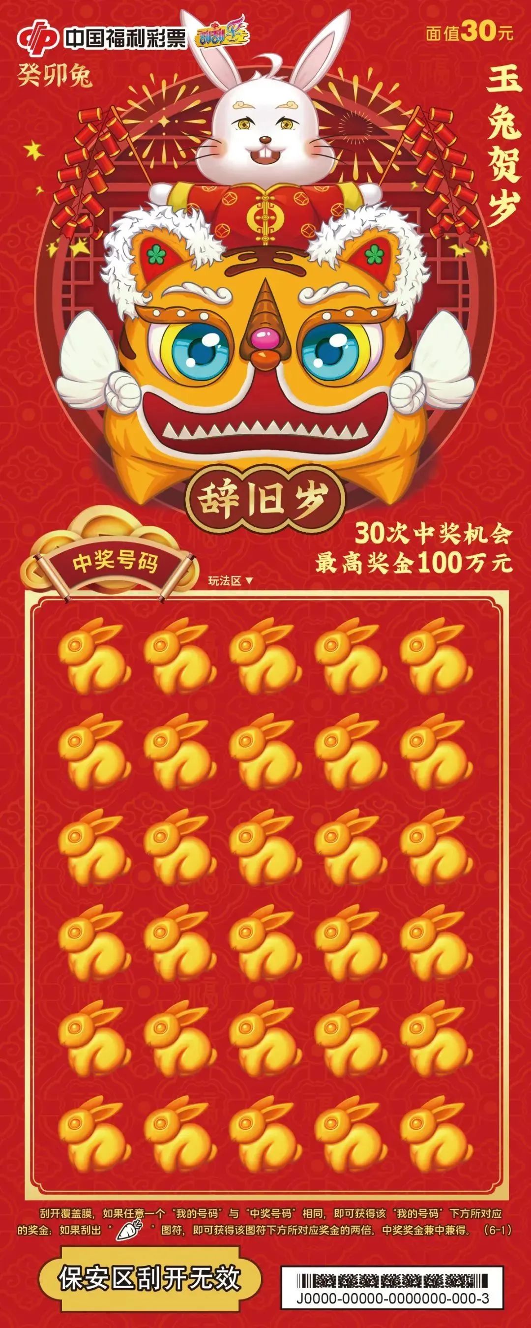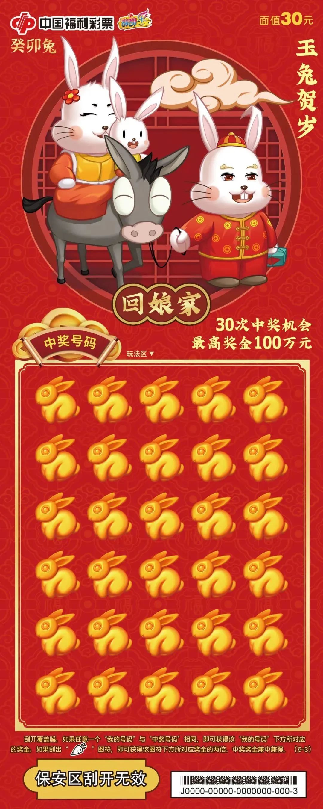 中国福利彩票此次推出刮刮乐“癸卯兔”生肖系列主题票,意在践行公益初心,传递美好祝福,祝愿大家在新的一年大展宏“兔”、好运连连!