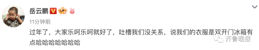 对于网友的玩笑小岳岳自己本人还在线调侃
