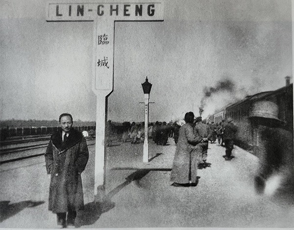 赵元任一行是从青岛到济南的,遗憾的是我们没有发现赵先生在青岛活动的信息,也没见到他拍摄与青岛有关的照片。依赵元任的爱好,又加青岛的美丽景色,他不会无动于衷,只是我们尚未发现。倒是在赵元任相册中,看到了一张拍摄于1930年间的照片,照片的背景是津浦铁路临城站月台的站牌,还有一列蒸汽机牵引着的旅客列车,以及月台上散步的旅客。临城就是现在的枣庄市薛城,是山东省的南大门,1923年5月在临城站外发生了震惊中外的“临城劫车案”,一列由江苏浦口开往天津的旅客列车在此被土匪孙美瑶截获,掳走车上39名外国人及200余名中国人。之前名不见经传的临城名声大噪,一时成为世界“名城”。没有查到赵元任乘坐火车的具体时间和去向,赵元任之所以在临城火车站留下这样一张全身照片,估计与临城劫车案有关。冬天里,不到四十岁的赵元任身穿一件带了皮毛领子的大衣,头发梳理得整齐明亮,留着那个年代在一些文人中突然时髦的仁丹胡,脚踏一双高腰靴子,看上去那是相当阔气。