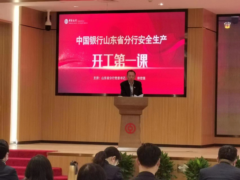 2023年1月29日下午,中国银行山东省分行党委书记、行长徐效强向全行员工讲授安全生产“开工第一课”。