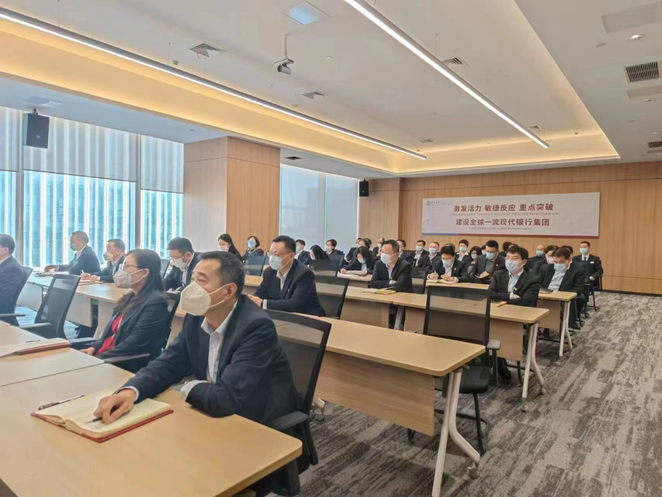 省行行领导、各部门高级经理以上人员现场参会。各二级分行行领导、部门负责人、各经营性机构负责人视频参加会议。徐效强行长授课全程进行录像并上传“中银研修云平台”,组织全行员工观看学习。省行党委委员、副行长杨青主持了会议。