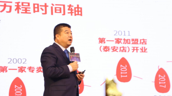 山东薛记食品科技有限公司总裁薛兴柱则以“品牌稳扎本地市场并迅速向外扩张背后的成长密码”为主题做了分享。薛记炒货品牌连锁店创建于2002年,2022年,山东薛记食品科技有限公司成立,同年A轮融资6亿元,成长到今年,薛记已在山东、京津冀、鲁豫皖、江浙沪及西北、川渝地区开设了750余家炒货专卖店。薛兴国分享到,薛记的生态战略就是“坚持平台化发展,与员工及合作伙伴共同成长”,合伙人核心文化就是“利他”,在直营门店,有33%的股份是员工持股。薛兴国提到,未来薛记的愿景就是“打造中国体验型休食第一品牌”。