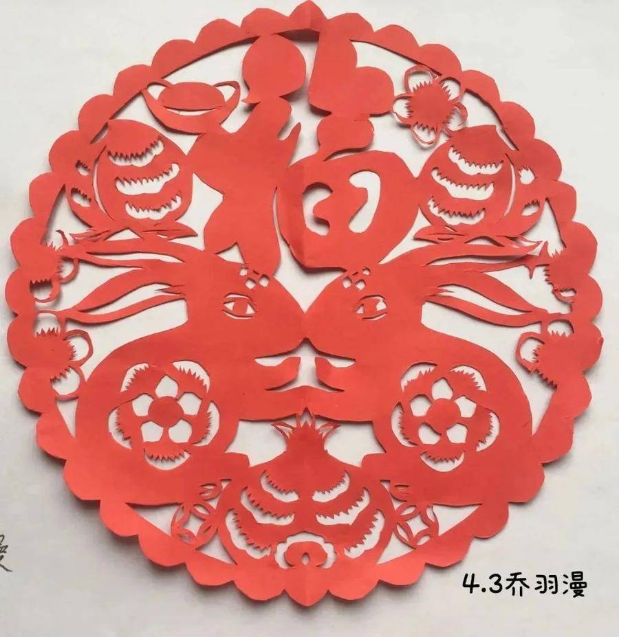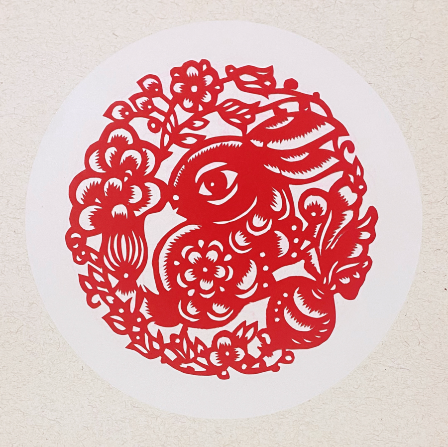 剪纸作品《玉兔迎春》