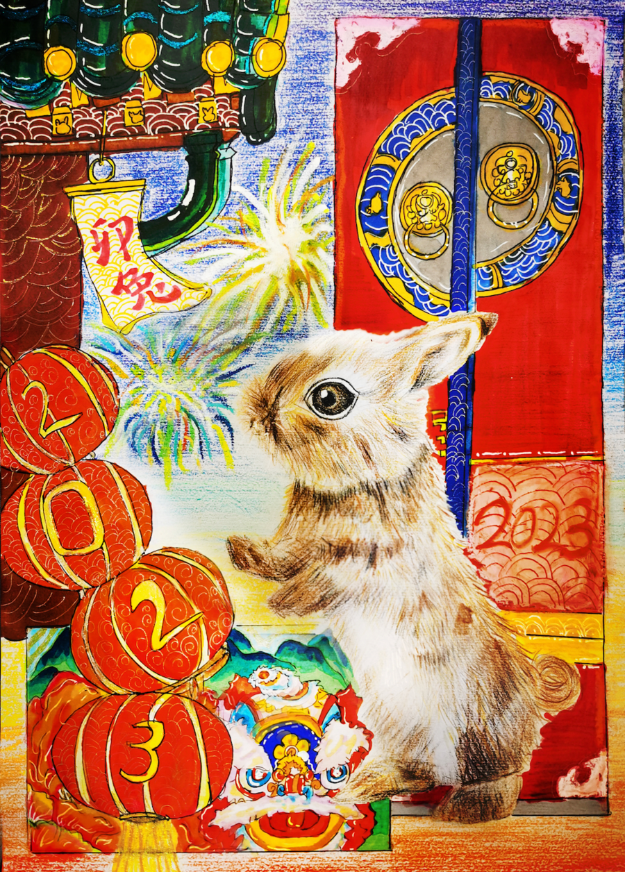 绘画作品《“兔”个热闹》