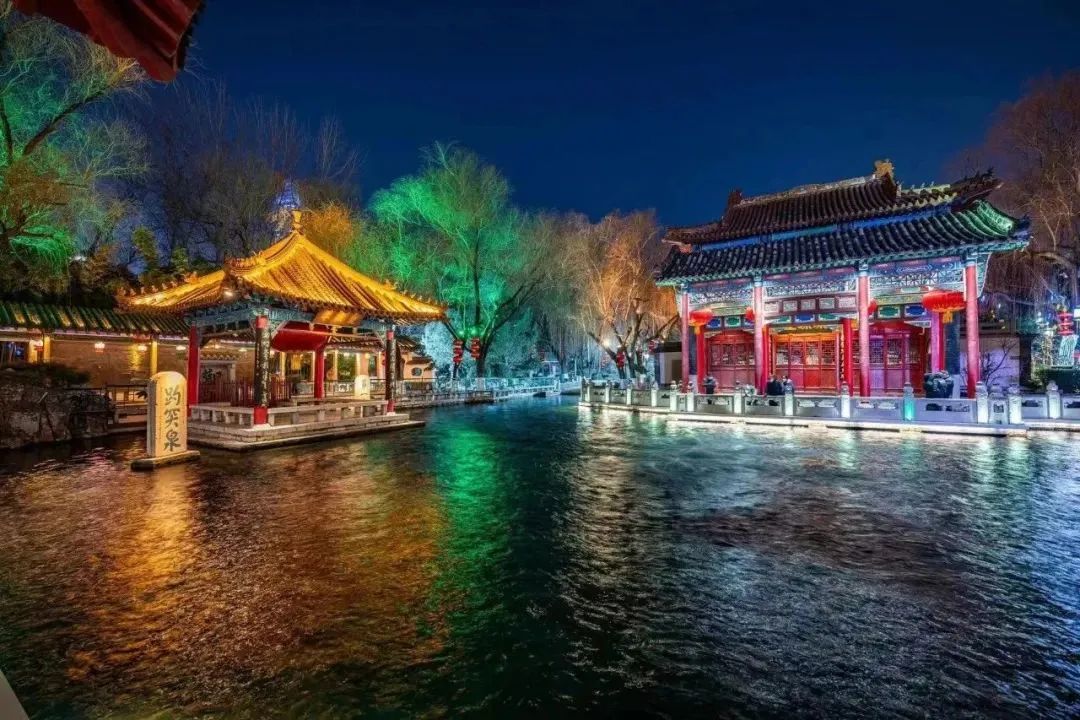 百余位能工巧匠打造出满园辉煌灯火,融合传统制灯工艺与现代科技,让趵突泉园区一夜间变为梦幻世界。