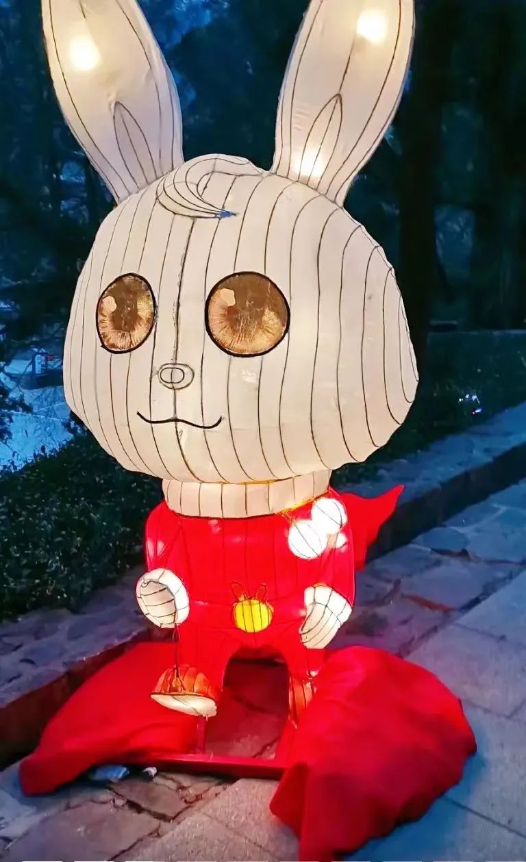 今年是兔年,在12生肖花灯中的“萌兔闹元宵”造型的花灯前,憨态可掬的小兔子撅着嘴巴,“萌”味十足。