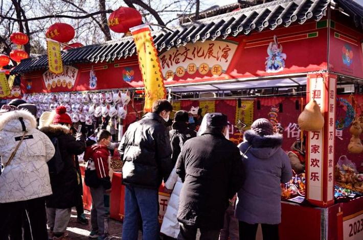千佛山风景区新春游园会格外热闹,民俗、非遗、手工艺及民俗旅游商品、名优特色小吃、文化产品等轮番来袭。