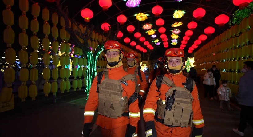 在淄博市张店区玉黛湖灯会现场,消防员设立执勤保卫组负责执勤保卫和应急情况处置,同时加强防火监督检查和现场蹲点力量,负责排查灯会的火灾隐患。同时,抽调专门力量负责城区火灾扑救和应急救援。始终坚持“安全第一,预防为主”的指导思想,实行以点带线、以线促面、内外协作的处置原则,不断织密立体安保体系。灯会期间,各执勤点执勤的消防员全程监护、巡防执勤,做好随时处置突发火情的充分准备,对活动核心区域重点单位、沿街门面、临时摊位进行不间断消防安全检查,为活动顺利进行肃清隐患、排除障碍。