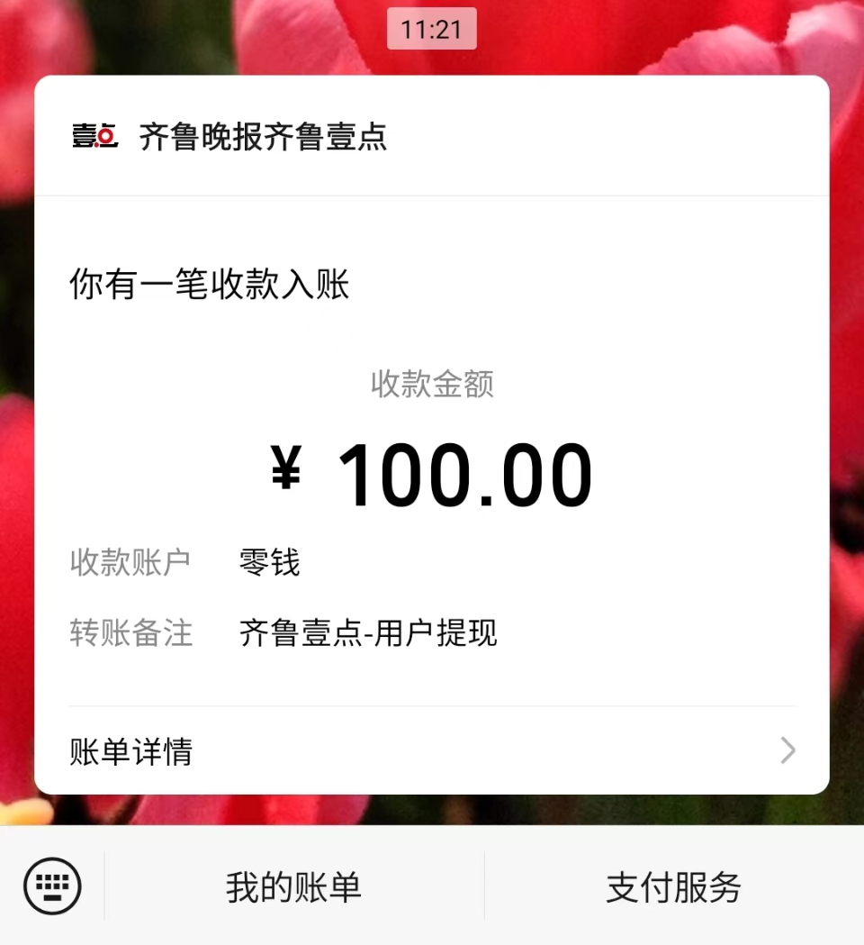 目前,壹粉运女士已经提现了大红包,把100元现金发到了多人家庭群中,也让家人们同享这份过节的喜悦。