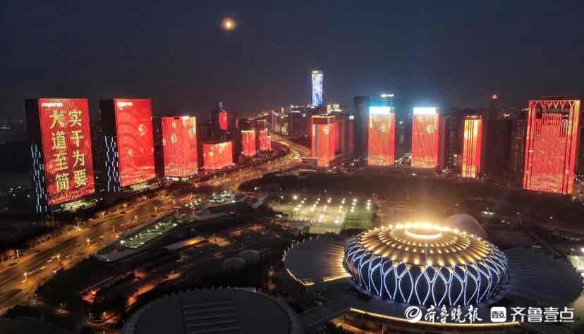 济南经十路上演璀璨灯光秀,元宵节氛围直接拉满! 热闻区 2023-02-05 2.4万 记者 王鑫 2月5日晚,济南经十东路沿线灯光秀灯火璀璨。 夜幕下,近百栋建筑“联手”,一幅幅具有特色的动画在楼宇间交替播放。“团团圆圆元宵快乐”“大道至简实干为要”等字样持续点亮。据悉,此次灯光秀于2月4日至5日晚上6点点亮泉城,让节日的泉城换上盛装。 责任编辑:帅为