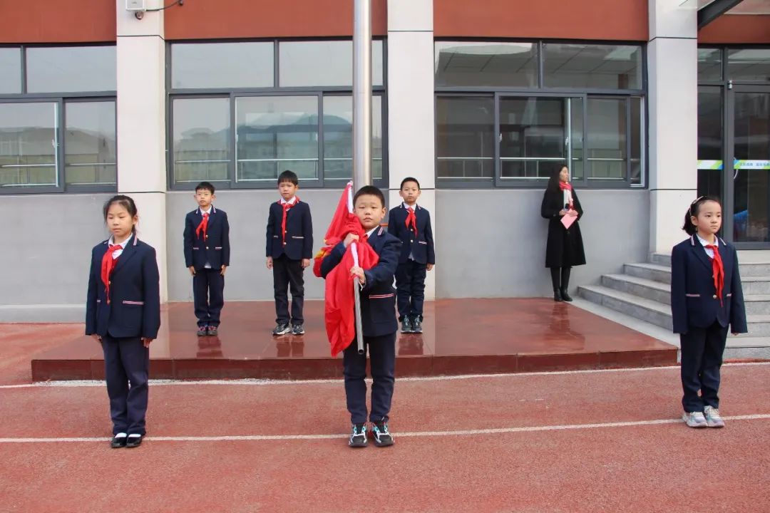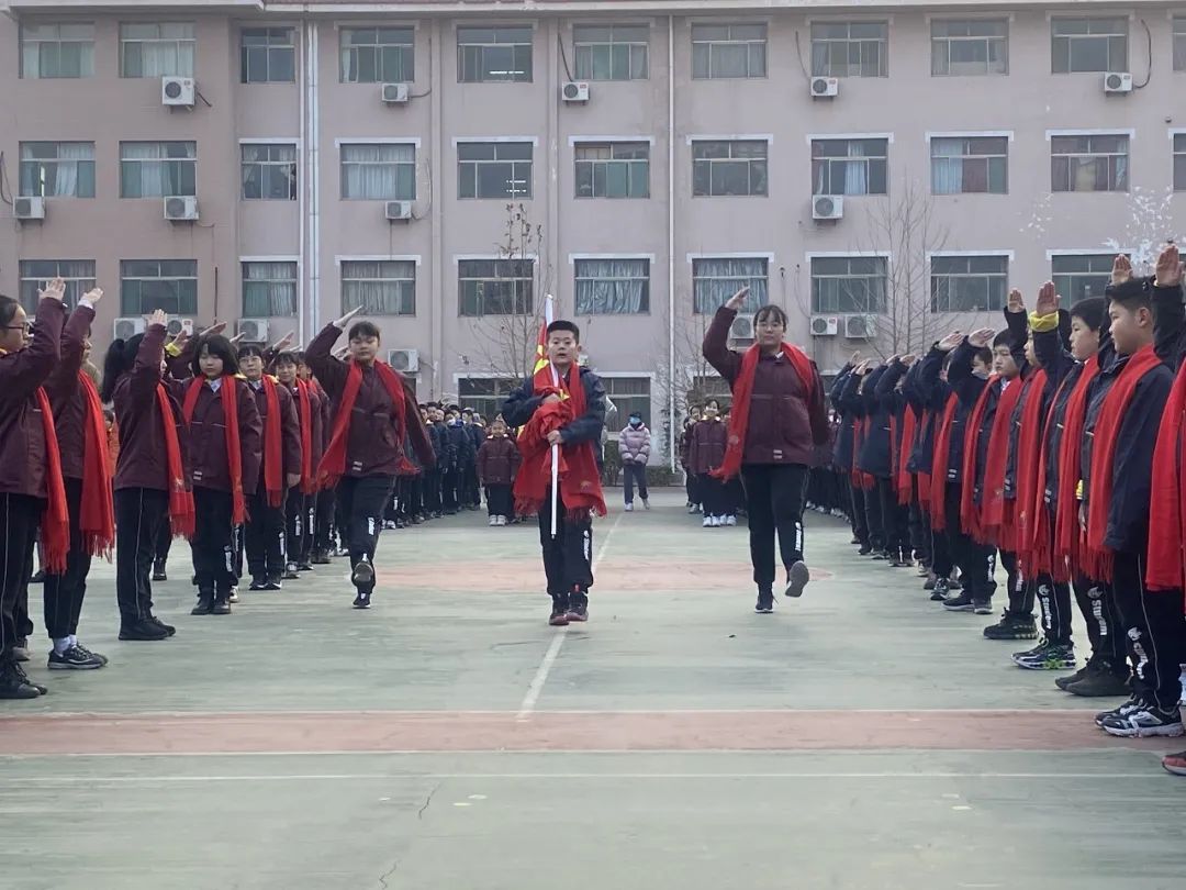 庄严的升旗仪式为千佛山校区开学典礼拉开了序幕。担任升旗仪式的学生佩戴定制的红围巾,全体师生齐唱国歌,冉冉升起的五星红旗承载着大家对新学期的无限希望。