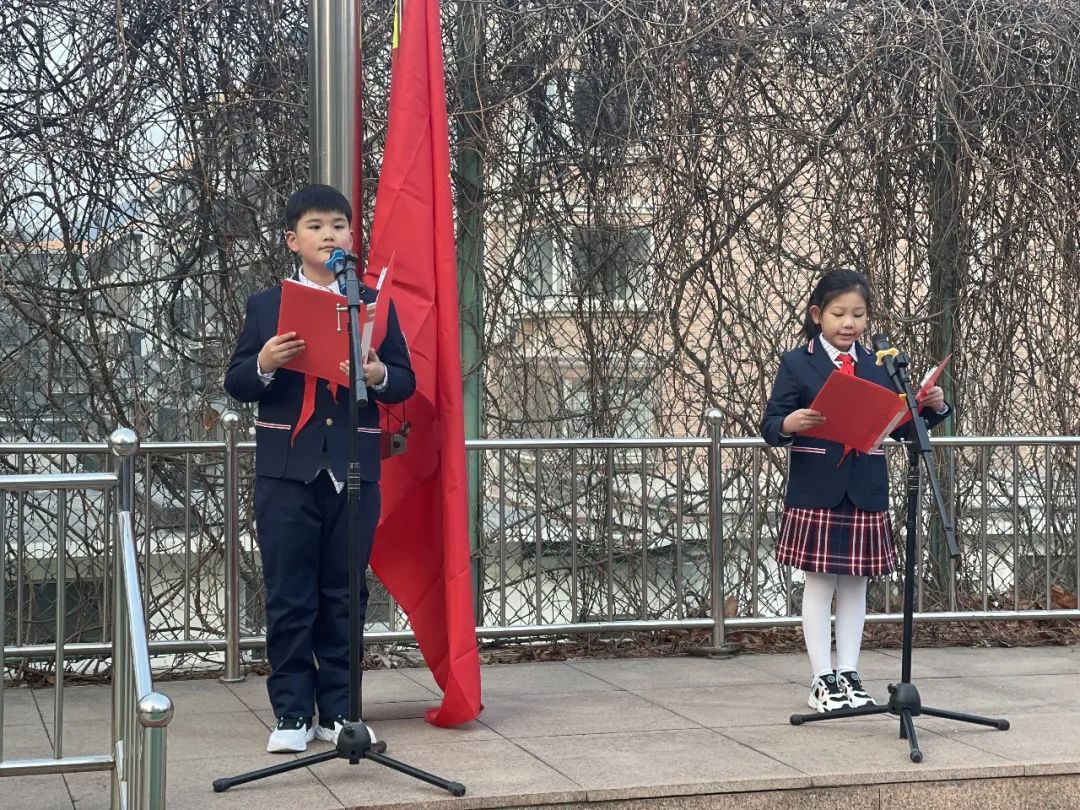 假期中,电影《满江红》在全国上映引起强烈反响,开学典礼上于萍主任带领全校师生复颂磅礴激昂的词作,感受其中的乐观奋发的精神表达对伟大祖国的深切热爱。