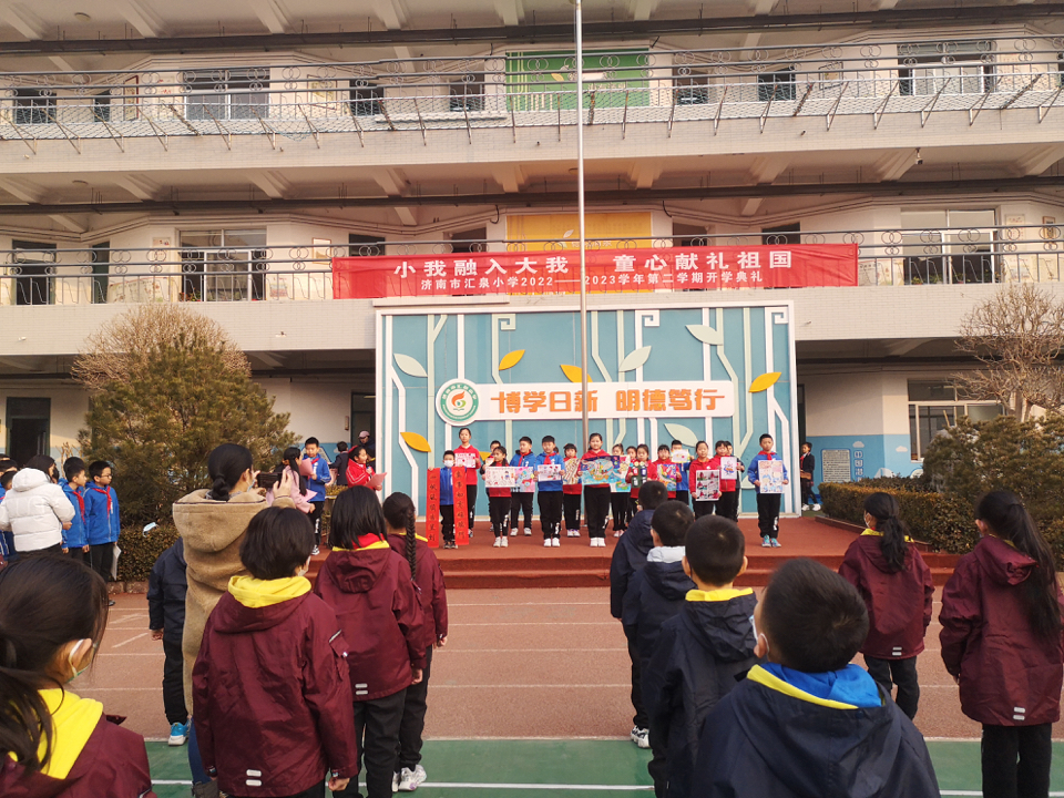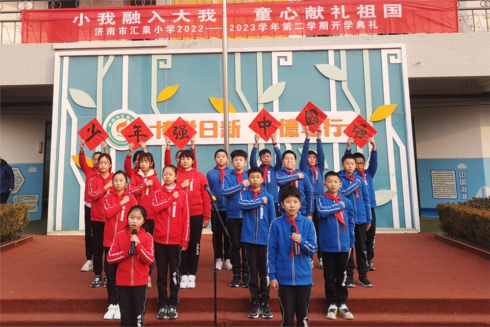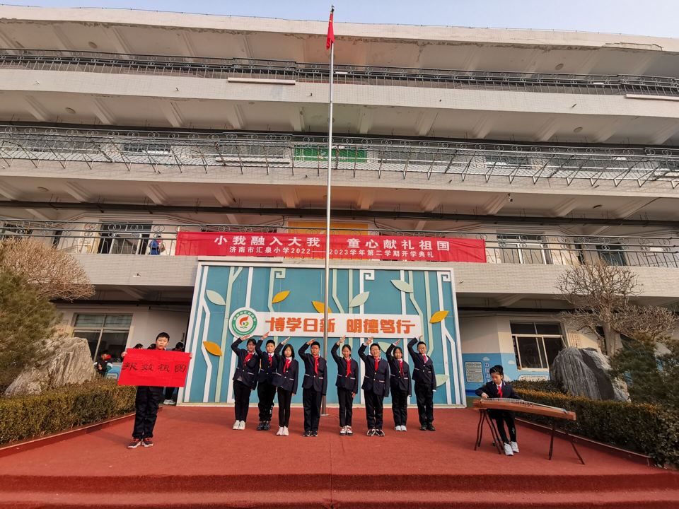 童心献祖国,济南市汇泉小学新学期开学啦! 大众报业·齐鲁壹点 2023-02-06 2月6日上午,济南市汇泉小学举行“小我融入大我 童心献礼祖国”主题开学典礼。学生在诗朗诵《大写的中国》中点赞“大我”;在红领巾寻访成果展示中成长“小我”;把“小我”融入“大我”的志向在歌曲《少年中国说》中展现,用童心献礼祖国! (通讯员 王文慧) 责任编辑:潘世金