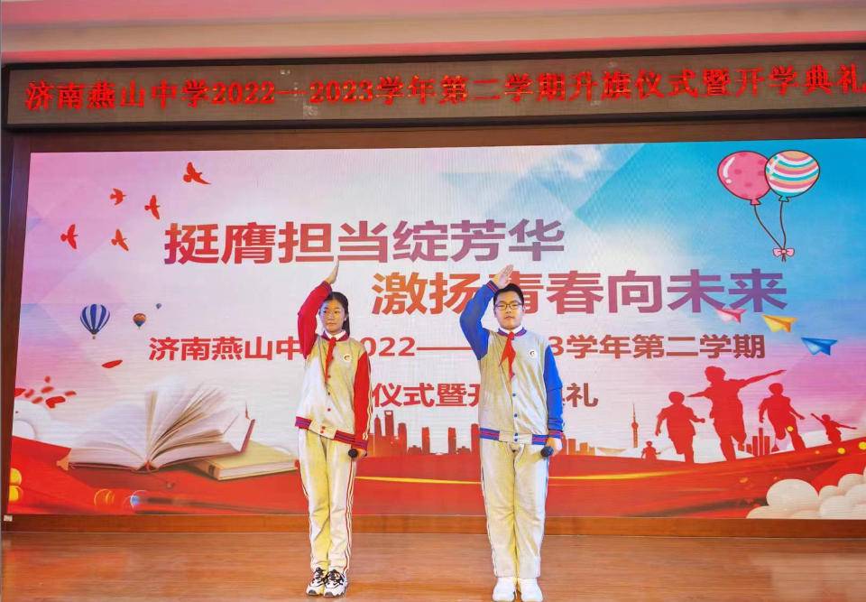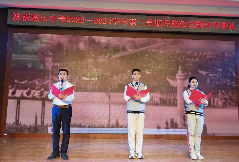 春回万物新,乘风启新程。2月6日清晨,济南燕山中学举行“挺膺担当绽芳华,激扬青春向未来”2023年春季学期开学典礼。典礼设报告厅主会场和各班分会场,线上线下共迎新学期的到来。历下区教体局体育教研员秦勇出席典礼并同校领导一起为先进班集体颁发荣誉证书。