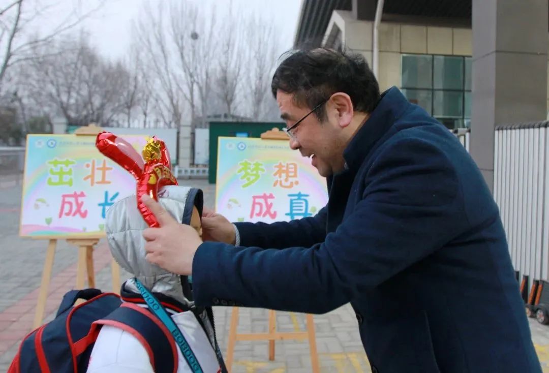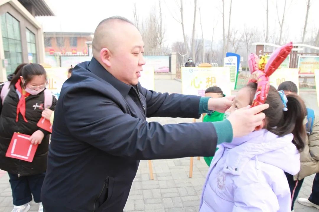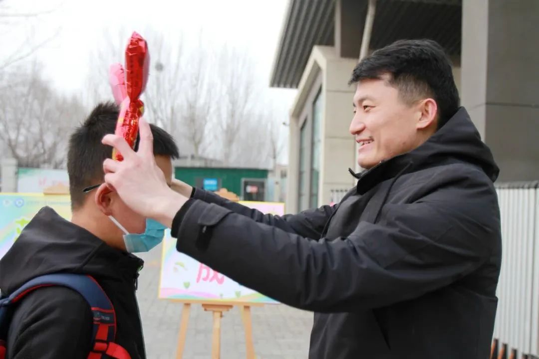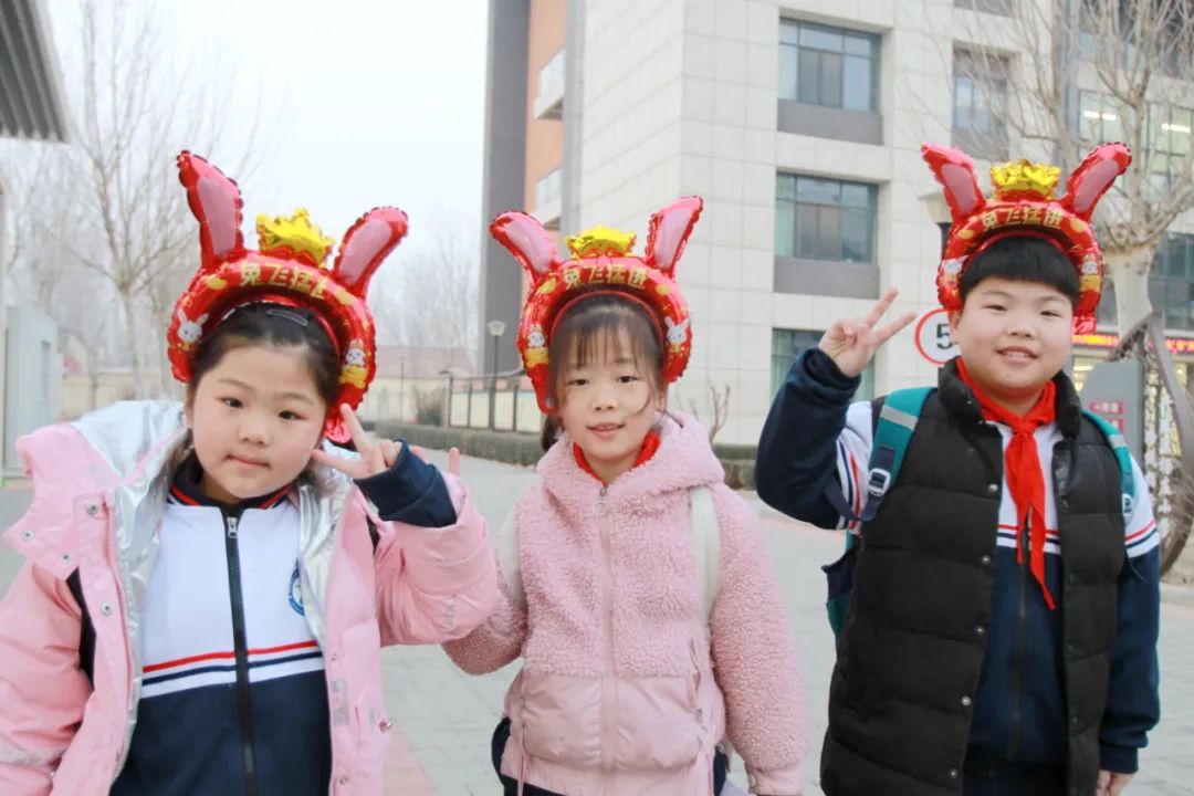 2月6日上午,学校安排了各种惊喜迎接同学们归来。“祝福走廊”的标语是老师对学生的希望与期待。通过“祝福走廊”来到校门口,学校领导和老师满心欢喜的为每位学生戴上“兔”飞猛进兔耳朵头饰,孩子们笑靥如花,感谢老师的精心准备与辛勤付出。