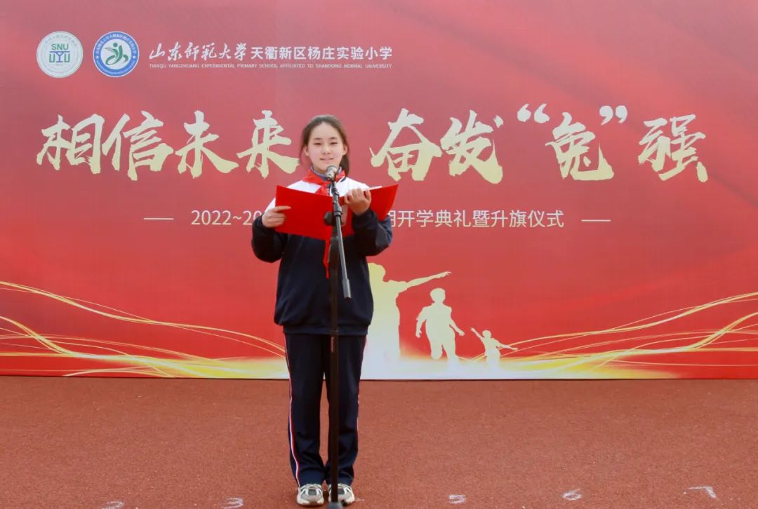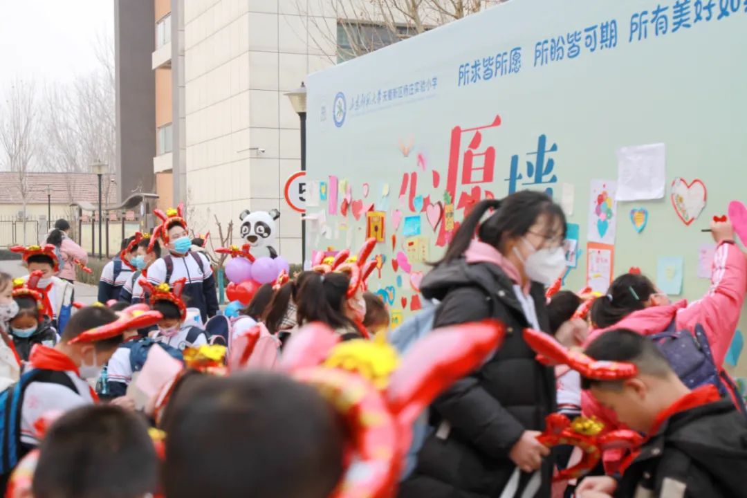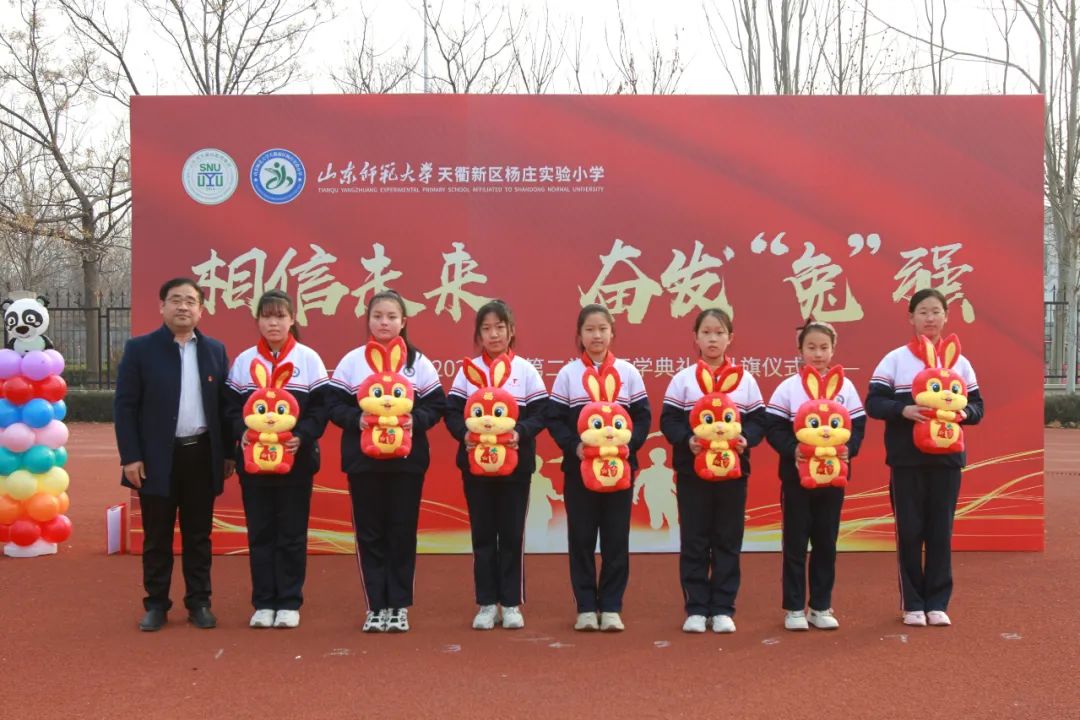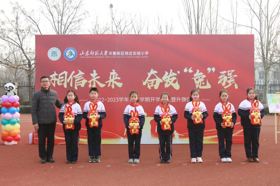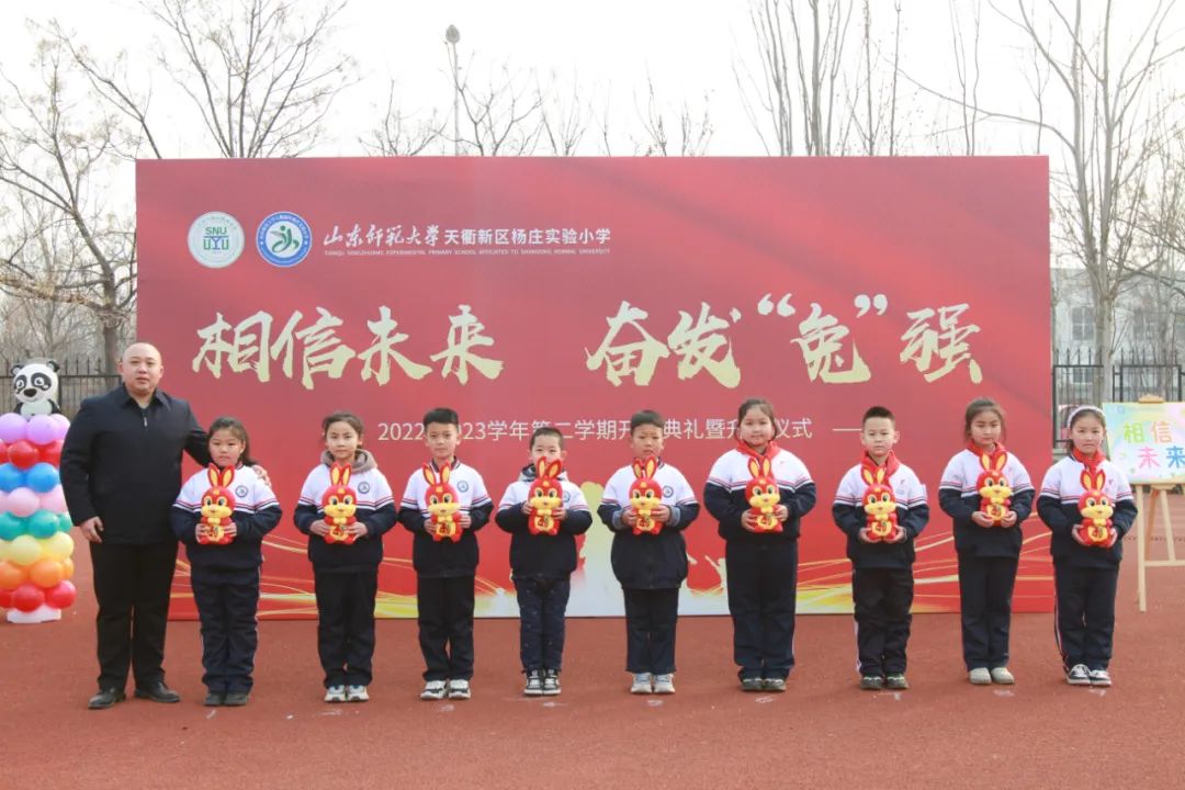 伴着初春的脚步,迎着和煦的春风,山东师范大学天衢新区杨庄实验小学精心策划组织开展了以“相信未来 奋发‘兔’强”为主题的2023年春季开学系列活动,迎接孩子们重返校园,开启新学期的学习与生活。学生们个个精神抖擞,老师们人人神采飞扬,全校师生用良好的精神面貌表达对新学期的憧憬与希望。