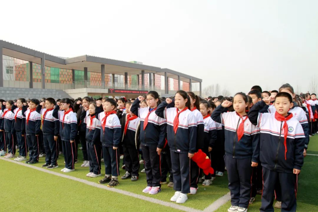 “宣誓”意味着作出承诺,担当责任,恪守忠诚,践行使命。对于每一位少先队员来说,宣誓是在表达自己努力为红领巾添光彩的决心。“我以红领巾的名义宣誓,我们是初升的太阳,朝气蓬勃;我们是年轻的一代,风华正茂。我们要用自己的行动,培养积极的人生态度,养成良好的行为规范,做一个热爱生活、努力学习、健康成长的优秀少先队员。”近1200名杨庄学子在国旗下进行了庄严的宣誓。