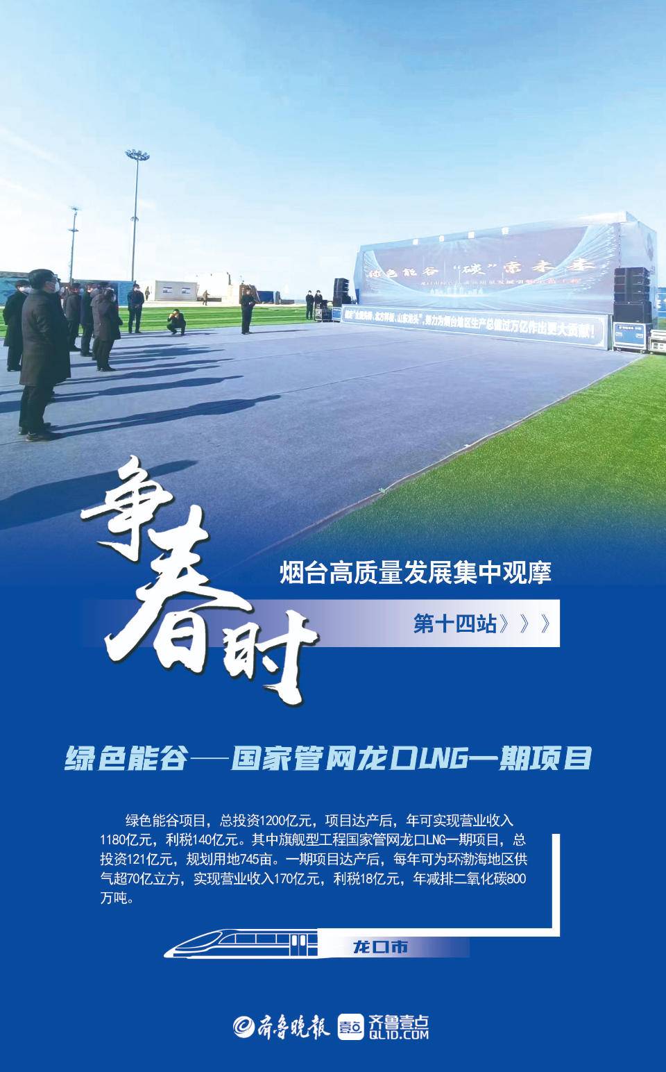 据了解,绿色能谷项目,分布于龙口市沿海及南部山区一线,总投资约1200亿元,分为“风光储”一体化、热电联产、LNG综合利用三大板块。项目达产后,年可实现营业收入1180亿元,利税140亿元,减少碳排放2650万吨。其中旗舰型工程国家管网龙口LNG一期项目,位于龙口港区屺㟂岛专区,由国家管网集团南山(山东)天然气有限公司投资建设。项目总投资121亿元,规划用地745亩,建设6座22万立方LNG储罐、2座27万立方LNG储罐、1座卸船8-26.6万立方LNG船舶接卸泊位,及相关配套接卸、气化、外输等主要工程设施,年接卸LNG能力500万吨将于2023年底建成投用。