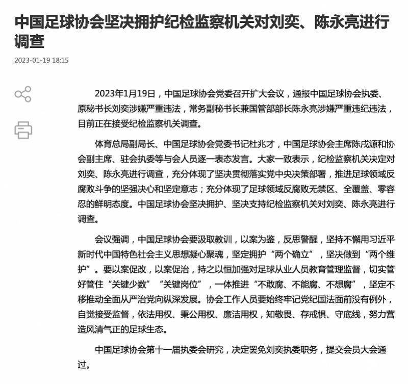 1月19日,中国足球协会党委召开扩大会议,当天傍晚,中国足协官网发布消息称——