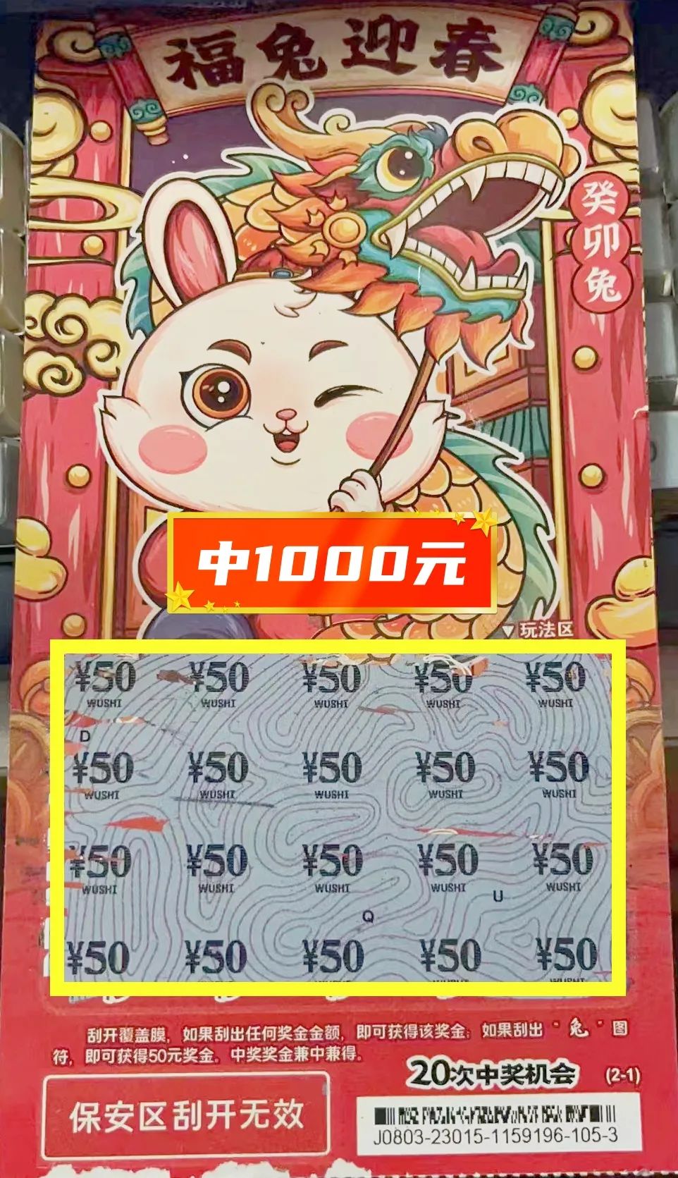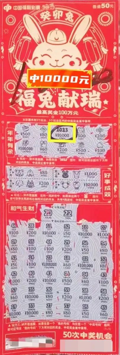 中奖彩票|“癸卯兔20元”