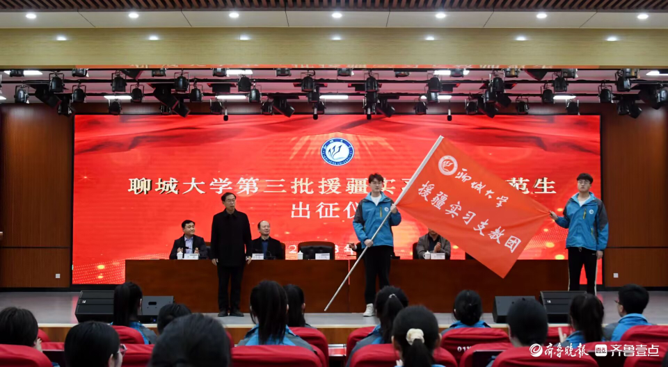 “践行志愿精神,严守支教纪律,不忘支教初心……”2月20日下午,聊城大学第三批援疆实习支教师范生出征仪式在校内隆重举行,伴着庄严的宣誓,56名优秀师范生和2名指导教师组成的第三批援疆实习支教团将远赴新疆喀什地区麦盖提县开展一个学期的实习支教,为建设美好新疆奉献自己的青春和才华。
