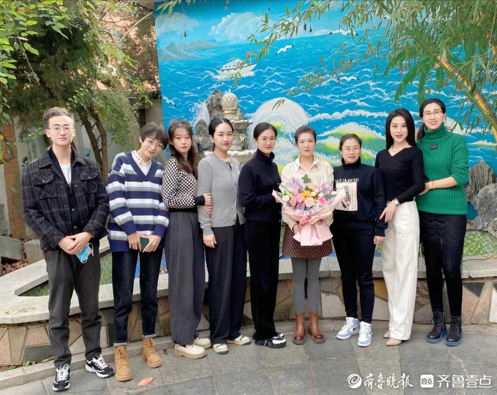 (刘晓与实习期老师、同学们的合影。左二短发女生为刘晓)