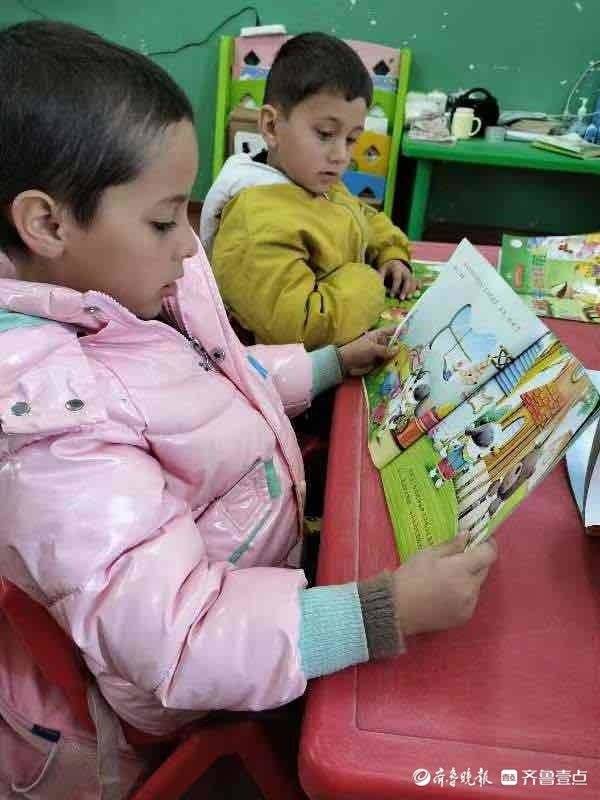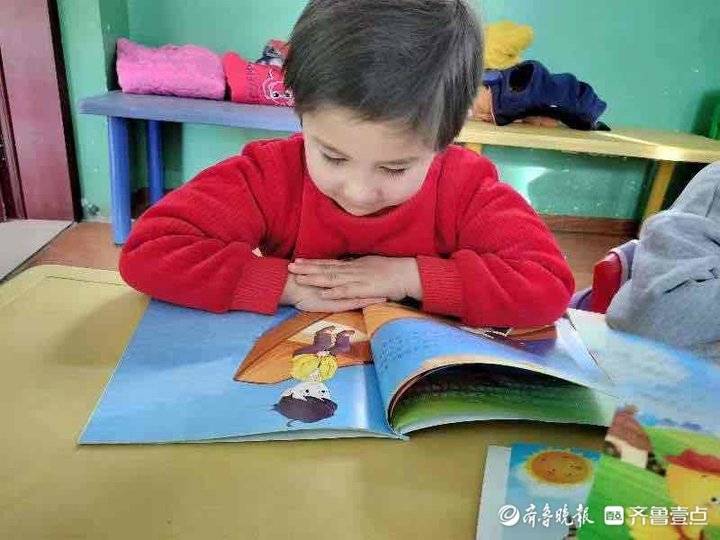 “这时,安娜站了起来,把自己的耳朵藏进了……”记者请安校长录了几段孩子们的视频,阅读课上,大家正用手指着书,一字一字声情并茂地朗读着。