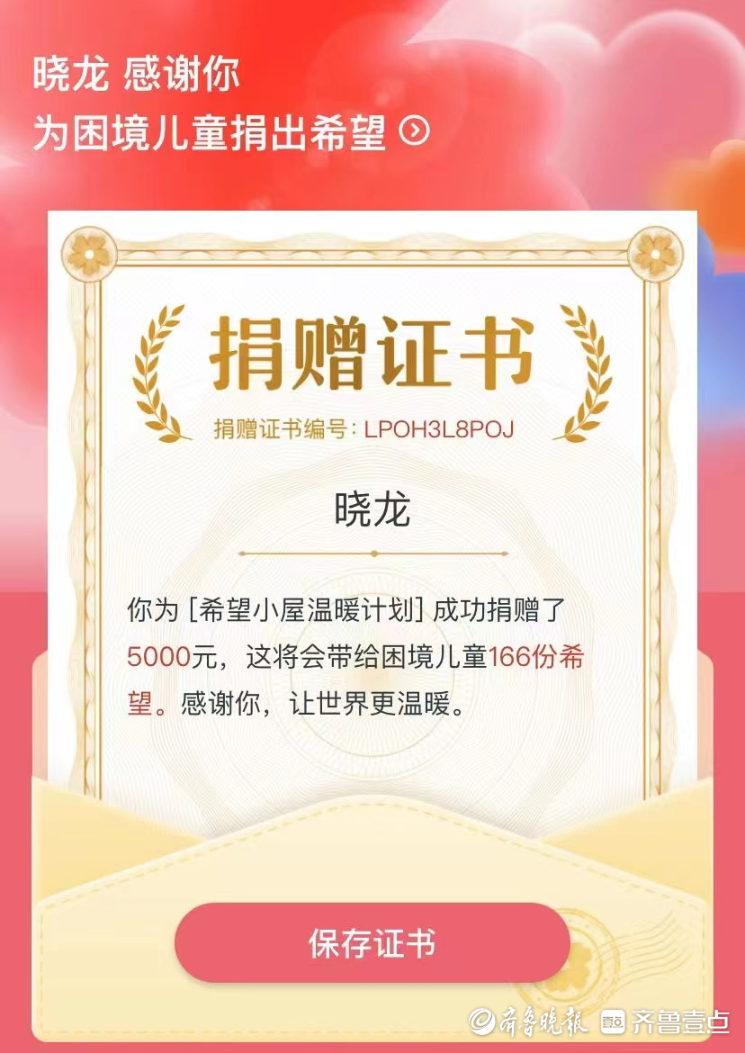 5000元正能量奖励全捐给了“希望小屋”