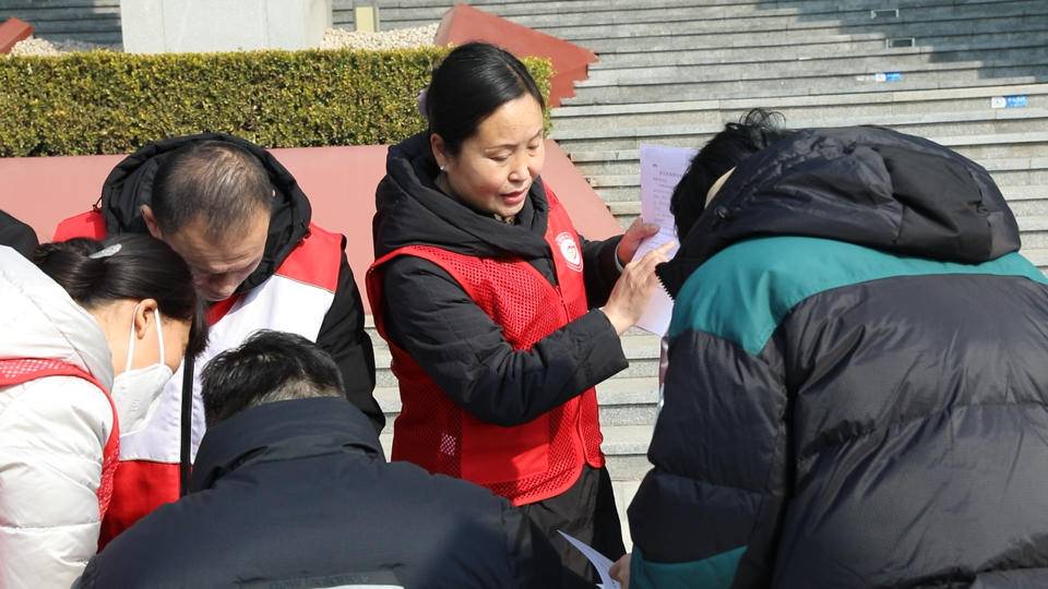 孟芹和志愿者们走进社区进行无偿献血宣传和志愿者招募