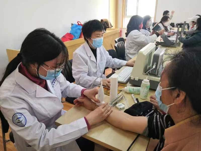 活动现场,社区居民络绎不绝。医务人员根据专业特长,分工合作,热情接待每一位居民,量血压、测血糖、检测骨密度,并耐心讲解所测数值意义,给与相应指导;同时,详细询问居民的身体状况,解答居民关于常见病、多发病的预防及治疗有关注意事项等问题,给与相应建议,引导他们树立健康保健意识,养成良好的生活习惯,防“患”于未然。其中,中医科医务人员通过“望闻问切”为居民健康“把脉”,受到居民的欢迎。青年志愿者积极为社区老年人发放《老年健康核心信息20条》等宣传彩页,引导老年人不断强化自我保健意识,学习自我监护知识,掌握自我管理技能,做好自己健康第一责任人。此次义诊活动共计服务社区居民80余人,发放宣传材料100余份。