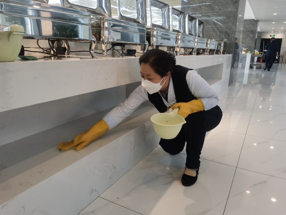 在疫情防控工作中,她更是以敬业精神和担当,奋战在省公司疫情防控的最前线,她身体力行,率先垂范,每日检查巡视,做到安全防疫不留死角,用实际行动为省公司筑起保障安全的一道屏障。疫情期间,为保证餐厅的工作正常运行,她七天七夜的时间驻扎在单位,没有床就临时用凳子搭起了小床铺,职责所在,她带领服务组姐妹们全力完成每日餐具、餐厅环境消杀、供餐服务、安全检查等工作,最大限度的保证了供餐服务工作的正常运行。在单位驻扎的每个夜晚,她总是最晚一个休息,主动承担起发放抗疫物资的工作,为每一位驻扎在单位的兄弟姐妹送去温暖;在单位驻扎的每一个清晨,她又是最早一个出现在工作岗位,承担着楼层消杀工作的重要责任。