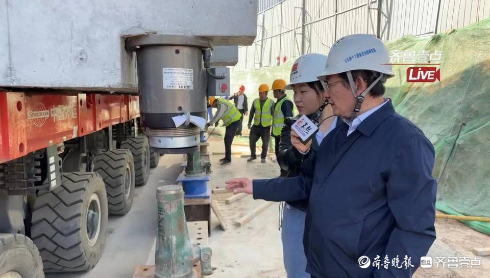 山东建筑大学工程鉴定加固研究院院长张鑫正在为齐鲁晚报·齐鲁壹点记者介绍施工细节。