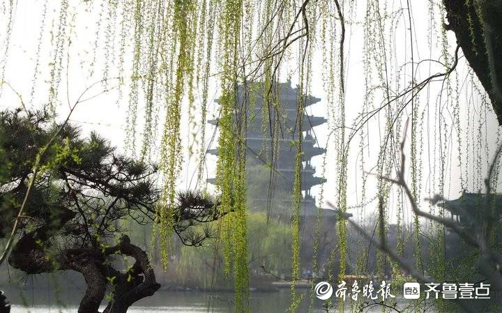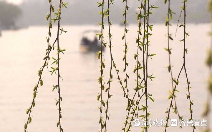 二月春风似剪刀,济南大明湖畔垂柳自成风景 第一现场 2023-03-13 7124 记者 周青先 3月13日,仲春时分的济南大明湖畔,众多水边的垂柳新枝新芽一片翠绿,生机勃勃,仿佛一幅幅绿色珠帘随风荡漾。 垂柳与景区的超然楼、小桥流水和游船构成美丽的风景。大明湖泉水温暖湿润,这里的垂柳发芽最早,远远望去大明湖春色满园,生机勃勃。 责任编辑:崔可腾
