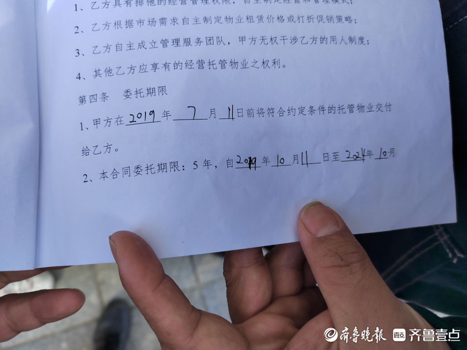 张先生说,2019年他在金城大厦购买了一套34.27平方米的公寓。从2019年7月份开始,他和山东万佳信源酒店管理有限公司(以下简称“酒店”)签署了一份5年期(2019年10月至2024年10月) 的物业委托管理经营合同,将公寓装修后交由酒店方经营管理。