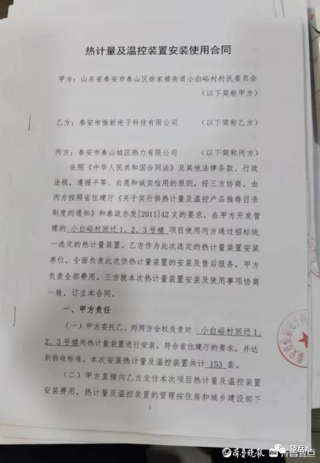 2022年11月10日,泰安市小白峪村的裕隆庄园新区居民反映该小区还没供上暖,求助壹点帮办记者。壹点帮办记者了解后发现,居民在购买裕隆庄园新区时,当时小白峪村委并未将热计量表费用纳入成本。现在想供暖,需要每户业主交纳安装热计量表费用2450元。居民们觉得价格太高。小区内需要安装热计量表的居民共153户,目前仅有60户支付。若是不交齐供暖是难了。