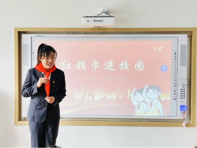 在《你好,红领巾》语言体验课中,来自历山学校的刘潇老师及小学生们走进班级群,带领大班幼儿认识红领巾,学习佩戴方法,并共同学唱《中国少年先锋队队歌》,激发了孩子们对小学生活的憧憬及对红领巾的热爱,在萌娃心灵中播下红色的种子。