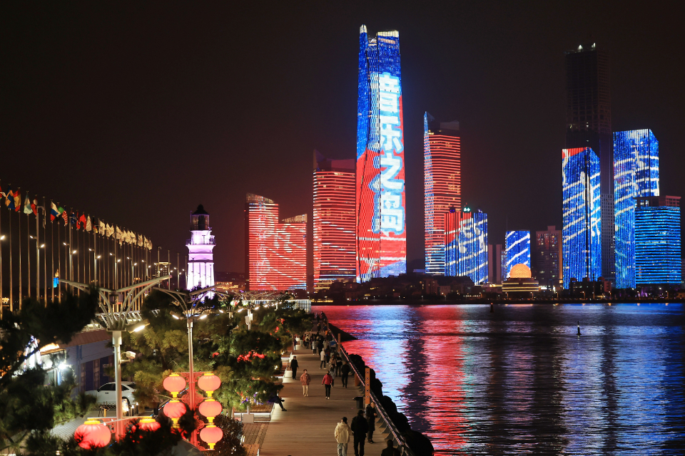 青岛滨海楼宇上演精彩灯光秀,2023山东旅发大会活动气氛浓厚 大众报业·齐鲁壹点 2023-03-25 1.5万 记者 王鑫 “相约时尚青岛,共享好客山东”。2023山东省旅游发展大会将于3月26日启幕。25日晚,青岛滨海楼宇的灯光秀精彩上演,迎接八方来客。沿海高楼楼体LED大屏上,“好客山东 好品山东”“沿着黄河遇见海”等主题画面不断变换,倒映在海面上,美轮美奂,为2023山东省旅游发展大会营造出浓厚的活动气氛。 责任编辑:郑珂
