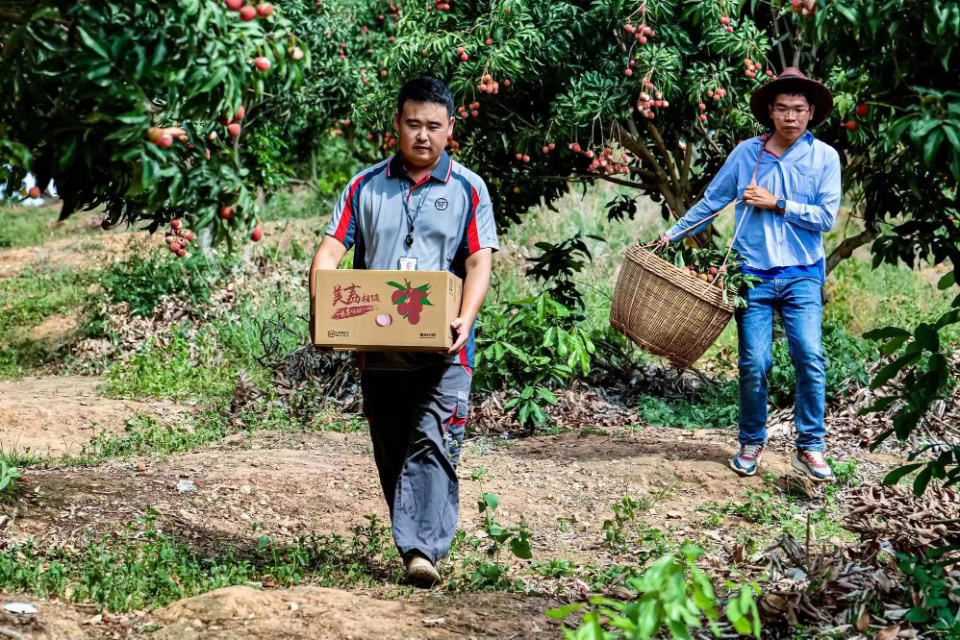 荔枝丰收季,顺丰快递员为果农收件