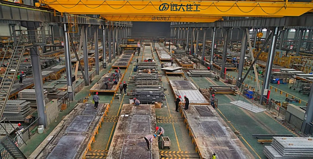光无限好,正是策马扬鞭时。在城开远大公司生产车间的流水线上,模具组装、布料浇捣、成品养护……在滑轮轨道上的台车循环往复之间,工人们各司其职,一块块预制好的混凝土构件正在迅速成型,在成品堆场上,龙门吊、叉车来回穿梭,忙着将成品构件装车发货。